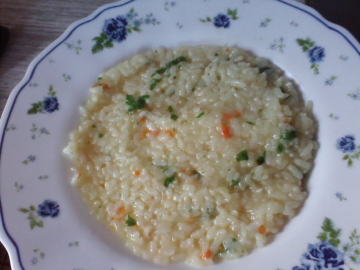 Se razuie morcovul, ceapa se taie marunt si se calesc in ulei. Se spala orezul si se pune peste legumele calite. Se lasa putin la calit si se adauga apa, sarea (delikat). Se pune capacul peste cratita si se lasa la foc potrivit fara a se amesteca in cratita pana scade bine lichidul. Daca se mesteca inainte de a scadea apa se va lipi orezul de fundul cratitei. Cand a scazut si s-a legat se adauga piperul. Se adauga patrunjel tocat deasupra, se opreste focul si se lasa la odihnit cateva minute cu capacul pus.