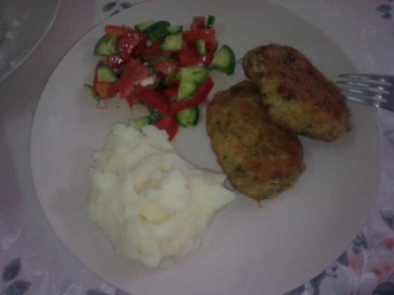 - Se amesteca toate ingredientele impreuna, se sareaza, condimenteaza si se fac pirjoale cam de jumatate din marimea palmei, foarte atent ca la inceput se va parea ca farsul acesta nu se prinde bine, dupa ce formati pirjoalele le dati prin pesmete si le puneti pe o tava presurata cu pesmete.
