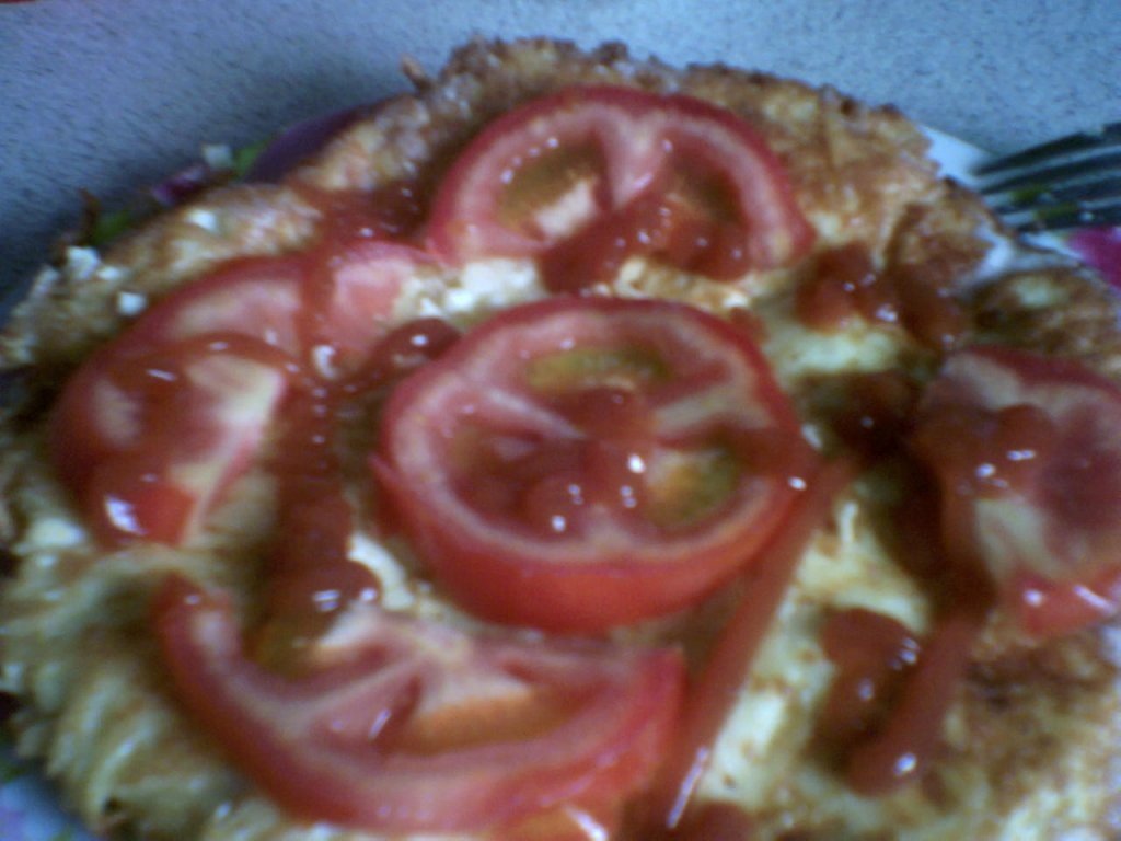 Cartoful il curatam ,il spalam si il radem pe razatoarea mare.Adaugam oul, carnatul(prajit inainte),branza(cine vrea poate adauga si alte ingrediente:ciuperci ,ceapa).Le amestecam si punem in tigaia incinsa cu putin ulei(un strat mic sa nu acopere in intregime fundul tigai).Se tine 3 minute pe o parte si 3 minute pe cealalta parte.se scoate din tigaie si se pune kechup si rosii sau fara .