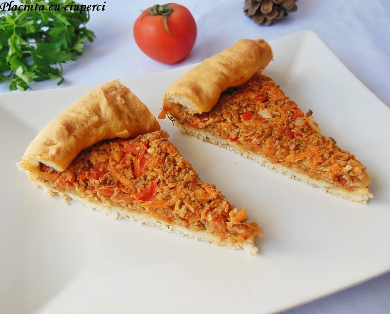 Luam foaia cu aluat, o asezam intr-o forma de tarta, punem umplutura uniform, iar marginile aluatului le pliem spre interiorul placintei.