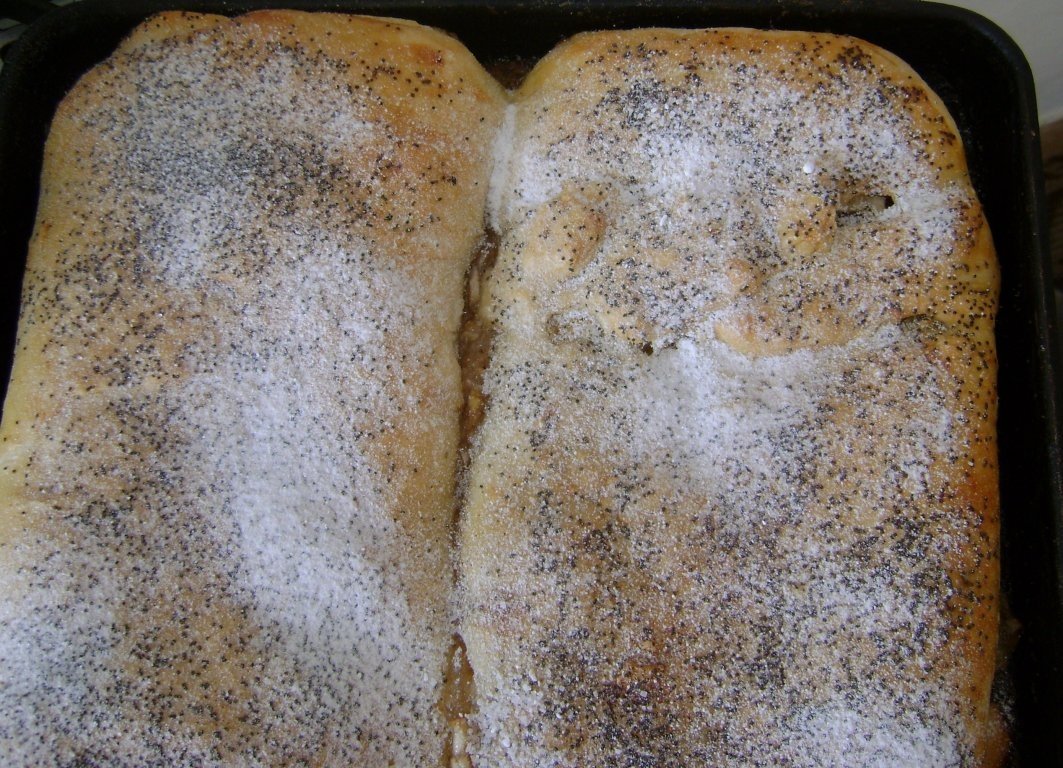 Umplutura: merele se curata si se dau pe razatoare, apoi se pun impreuna cu zaharul intr-o cratita pe foc moderat. Se amesteca si se lasa sa-si lasa merele zeama, apoi iar se amesteca si tot asa pana se evapora zeama de mere. Dupa ce merele si-au lasat toata zeama adaugati scortisoara ( eu am pus o lingurita), si amestecati din nou.