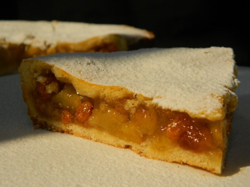 Placinta cu mere am gasit-o pe blogul doamnei Laura Laurentiu, pe care o admir sincer.