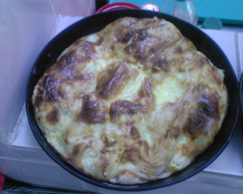 Nu am o reteta proprizisa a placintei ci un mod de preparare,pentru ca nu avem fiecare din noi,tavi sau tigai standard,deaceea am preferat sa arat modul de preparare,iar cei interesati isi vor regla cantitatile dupa ustensilele care le au in dotare.