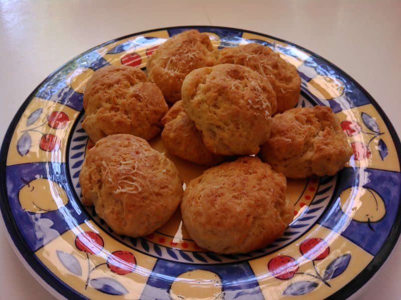 Aluatul se intinde de grosimea unui deget, se decupeaza pogacelele cu ajutorul unui pahar, se asaza in tava tapetata cu hartie de copt, se ung cu galbenus de ou si pe fiecare, se presara cascaval ras. (eu le-am facut bilute cu mana si le am pus in tava, normal ele se decupeaza cu paharul, dar fiindca nu am avut rabdare, le-am facut bilute).