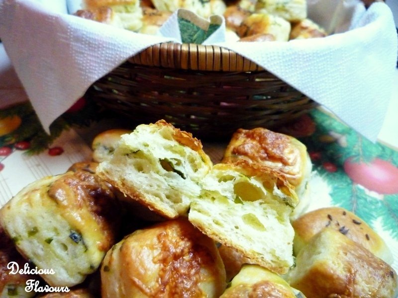 Cartoful il fierbem in coaja, apoi il curatam, zdrobim ca pentru pireu si-l lasam sa se raceasca. Pana atunci, incalzim putin laptele, punem 1 lingurita mica de zahar si adaugam drojdia sfaramata. Faina, untura si sarea se amesteca putin, adaugam cartoful zdrobit, galbenusurile, laptele cu drojdia si jumatate din cantitatea de cascaval ras (puteti folosi si parmezan). Adaugand treptat smantana, framantam pana obtinem un aluat omogen, daca mai e nevoie se mai poate adauga smantana. Acoperim vasul si lasam la dospit circa 90 minute. Scoatem aluatul din vas, il intindem, ungem cu unt topit, presaram leurda maruntita (puneti cat doriti in functie de gustul fiecaruia) si restul de cascaval ras. Rulam aluatul si-l mai lasam sa se odihneasca inca 1 ora. Dupa acest timp il intindem pe masa pudrata cu faina, intr-o foaie de aproximativ 1,5-2 cm grosime. Decupam cu o forma patrata sau rotunda, le asezam intr-o tava tapetata cu hartie de copt, ungem cu un ou batut in prealabil, presaram deasupra cascaval ras, chimen sau orice altceva doriti si le introducem in cuptorul incins.
