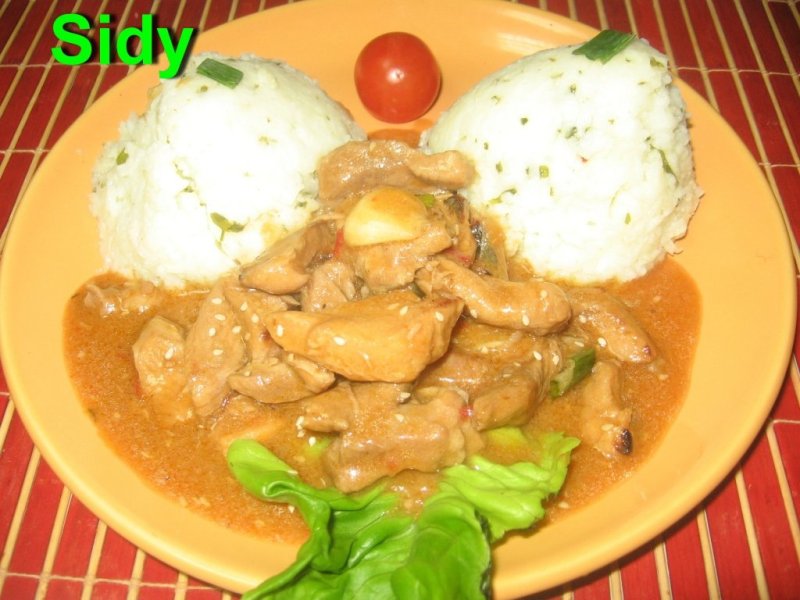Cand fierbe adaugam carnea si lasam sa clocoteasca la foc mic pina scade lichidul si carnea este facuta.Adaugam amidonul si uleiul de susan, mai da doua clocote si se poate stinge focul.