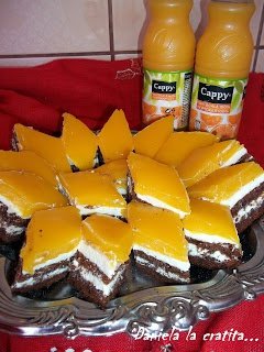 Glazura de deasupra prajiturii se prepara conform instructiunilor de pe plic,inlocuind laptele cu sucul Cappy.