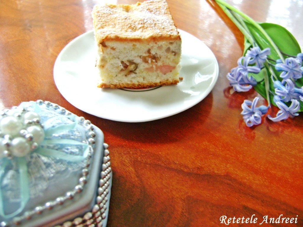 Se coace intr-o forma cu hartie de copt la foc potrivit cam 45 de min (se face testul cu scobitoarea).