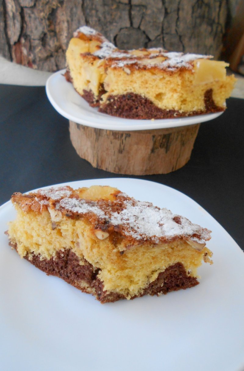 Turnam ¾ din compozitie peste nuci si ananas , iar in cantitatea ramasa punem cacao .