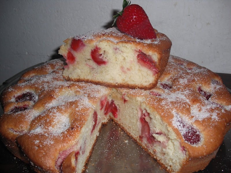 Ungem bine cu ulei tava (tava mea are 27 cm) si tapetam cu faina,apoi turnam compozitia si asezam toate capsunile deasupra. Dam la cuptor la foc mic-mijlociu pana se rumeneste frumos.