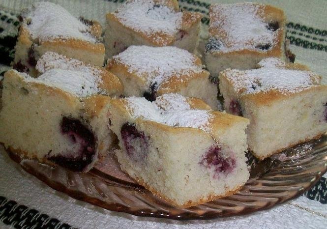 Intr-o tava,cu hirtie de copt(sau unsa cu unt si tapetata cu faina),se pune compozitia,peste care,se aranjeaza ciresele.