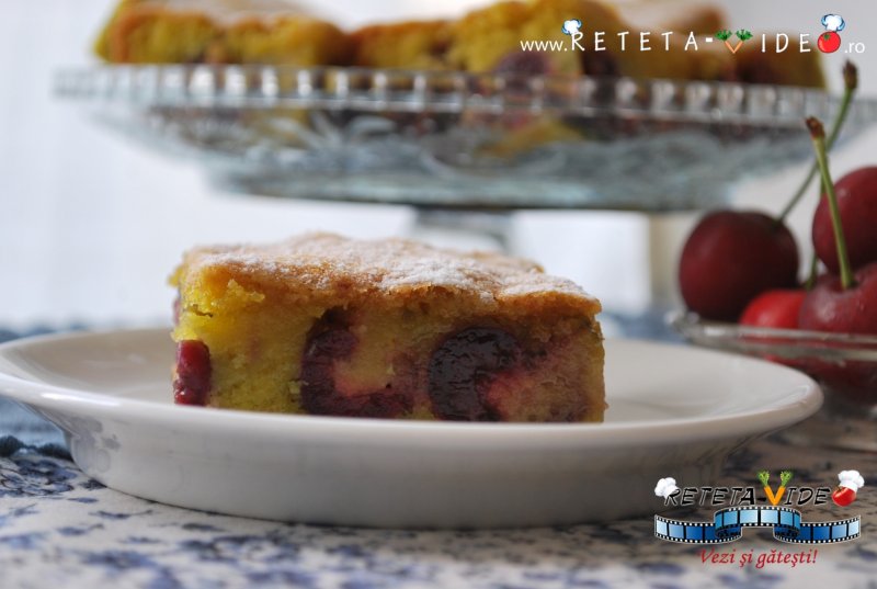 Scoatem pandispanul cu cirese racorit din cuptor si il lasam sa se raceasca complet.