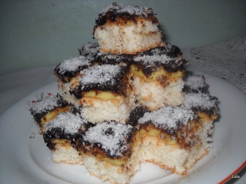 Blatul se pune pe un platou,deasupra crema,peste crema glazura si se presara nuca de cocos.