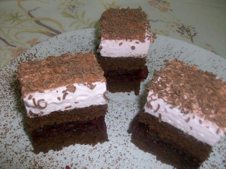 In timpul in care blatul e in cuptor,se face siropul:zeama de la compotul de visine,cu apa si zaharul,se fierb;dupa ce dau citeva clocote,se iau de pe foc si se aromeaza.Se lasa sa se raceasca.