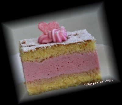 Partea de la baza se pune inapoi in tava in care s-a copt si aindoua partile se insiropeaza(eu am insiropat cu lapte+sirop de capsuni).Deasupra se pune crema,care sa c0oagulat putin si se niveleaza unfiorm.Se aseaza al doilea blat si pune la frigider pt. ca 2-3 ore pina ce crema s-a gelatinat complet.