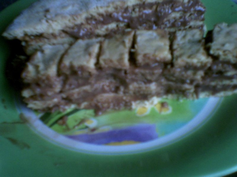 Crema:intr-un vas se pune o cana de lapte cu faina si amestecam bine pana obtinem o pasta,care o turnam peste laptele caldut amestecat cu cacaua.Amestecam in continuu pana la fierbere.Dupa ce a inceput sa fiarba dam la o parte si adaugam untul si esenta.Ametecam bine pana la omogenizare si lasam sa se raceasca.