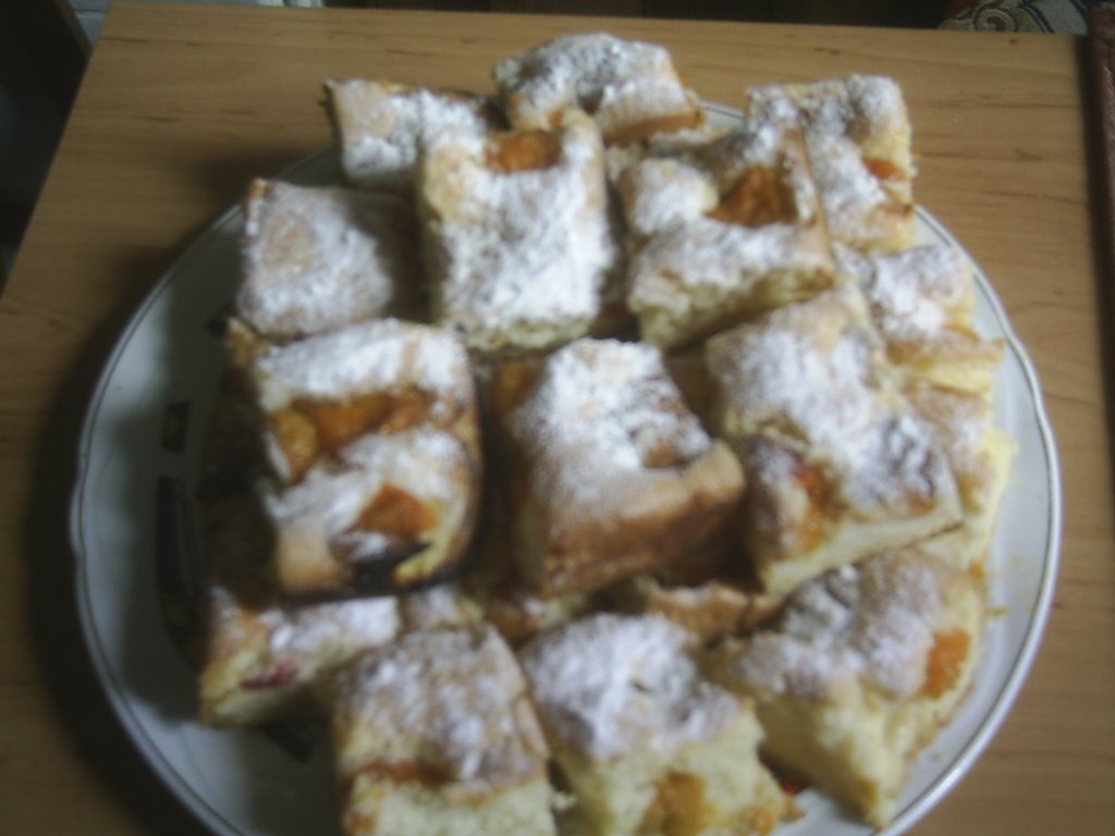 Se unge o tava cu unt sau margarina Rama,se tapeteaza cu faina,se toarna compozitia,iar deasupra se toarna in ploaie miezul de nuca macinat dupa gust .Se introduce la cuptor la foc mediu pentru cca 10-15 min,dupa care se scoate din cuptor , se aseaza fructele si se reintroduce la cuptor.
