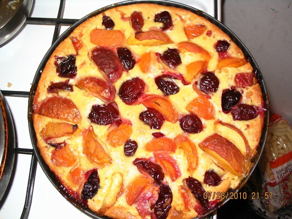 intr.o tava de tarta , tapetata cu unt si putina faina se pune compozitia omogenizata.