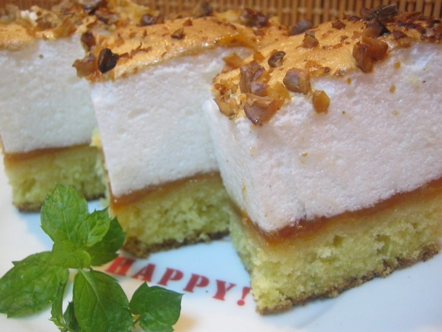 Dam tava la cuptor sa se coaca blatul, aproximativ 25 de minute( reducem focul la 160 de grade ), dupa care scoatem tava si ungem blatul fierbinte cu gemul de caise .
