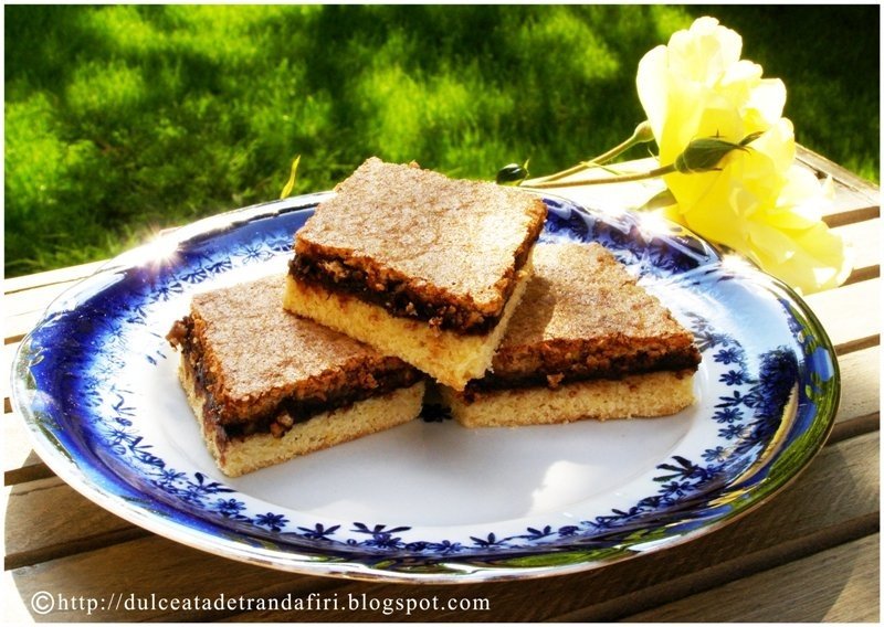Se amesteca toate ingredientele si se obtine un aluat potrivit de tare, nelipicios, manevrabil. Se intinde cu facaletul in tava tapetata cu hartie de copt. Peste el, cu ajutorul unui cutit de masa sau cu o spatula, se intinde gemul.