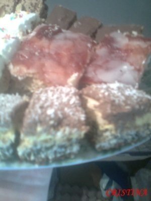 Blat:se bat spuma albusurile,se adauga zaharul,apoi faina,macul si nuca de cocos se amesteca usor cu lingura de jos in sus.Se coace in tava unsa si tapetata pe hartie de copt 10 minute la foc mare apoi se continua coacerea la foc mic.