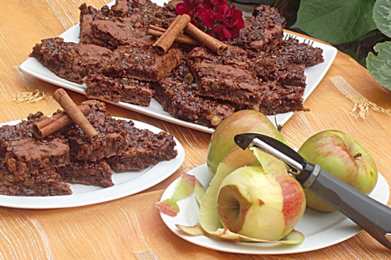 1.untul sau margarina moale(la temperatura camerei) se mixeaza cu zaharul apoi se adauga cate ou(se aduga urmatorul,numai dupa ce a fost incorporat cel dinainte),se adauga si esenta apoi faina amestecata cu cacaoa,scortisoara si praful de copt si la urma merele curatate de coaja si date prin razatoarea mica.