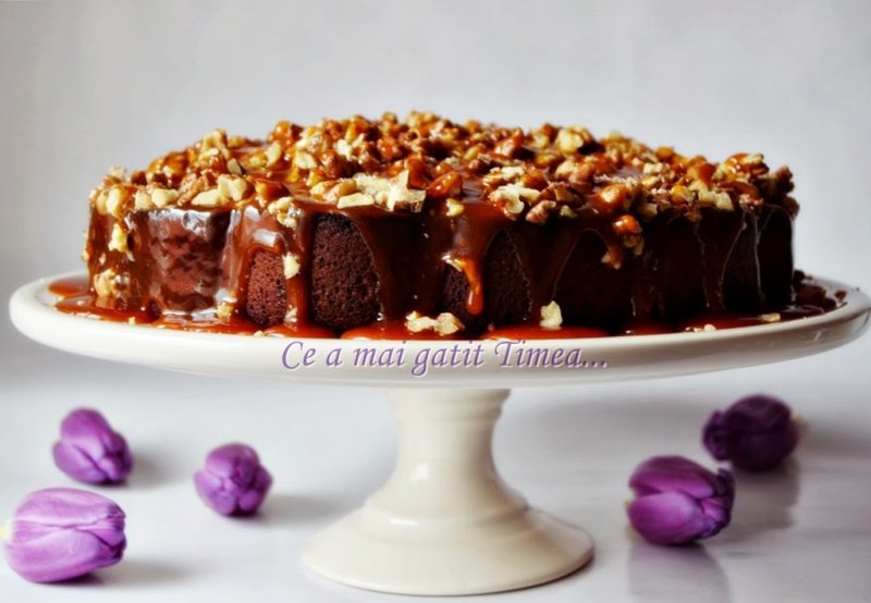 Blatul este pufos si usor faramicios iar pentru caramelul cu nuca eu nu am cuvinte sa va descriu cat de mult imi place.