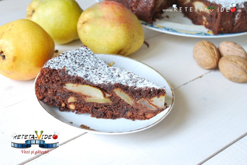 Cand prajitura cu pere trece testul scobitorii o scoatem din cuptor si o lasam sa se raceasca complet.