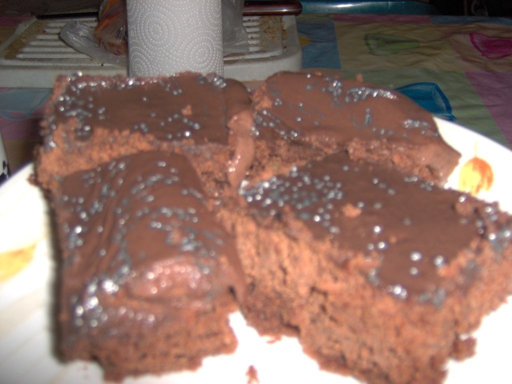 cit prajitura se coace punem pe un foc mic sa se incalzeasca smintina dar sa nu fiarba la care adaugam ciocolata bucatele si amestecam pina este omogena putem adauga 25 de grame de unt si crema este mai luciosa si gustoasa. se lasa sa se raceasca putin si se toarna peste prajitura care a fost scoasa din cuptor si sa racit putin.