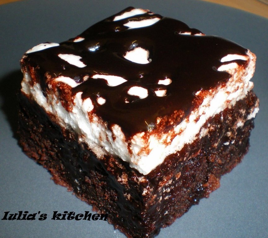 -Bati albusurile spuma pe baie de aburi impreuna cu 150 g zahar,apoi intinzi peste prajitura,imediat ce o scoti din cuptor.
