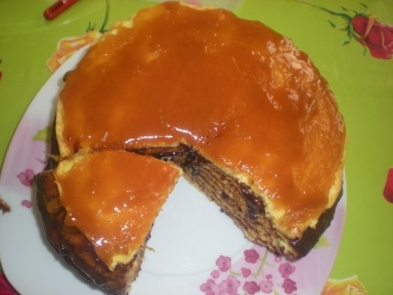 Dupa aceea alternam blat, crema, blat, crema, pana terminam cu ultimul blat imbracat in caramel. Se lasa cateva ore in frigider pentru a se raci mai bine si se serveste. Pofta buna!