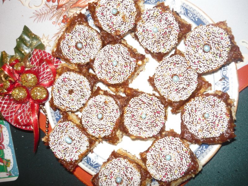 Se rastoarna blatul fierbinte peste care se pune ciocolata alba topita, apoi crema caramel. Se lasa cateva ore si se taie patrate. Se decoreaza cu ornamente colorate, creioane Dr.Oetker etc. Este o prajitura delicioasa, cu un grad mic dificultate, dar foarte gustuoasa.