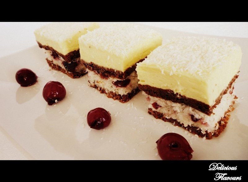 Ornam cu nuca de cocos si lasam la rece cel putin cateva ore dupa care se poate portiona.