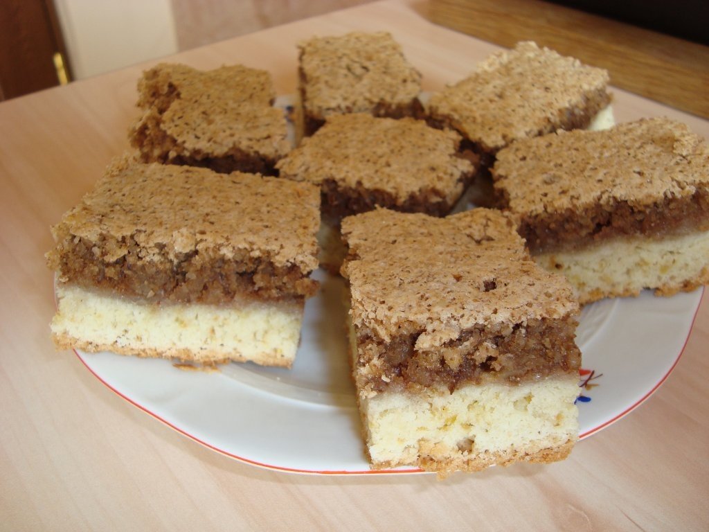 Margarina cu faina, cu 100g zahar, cu un ou,cu coaja de lamaie di cu praful de copt stins cu otet sau lamaie se framanta toate si se pune in tava unsa si tapetata.