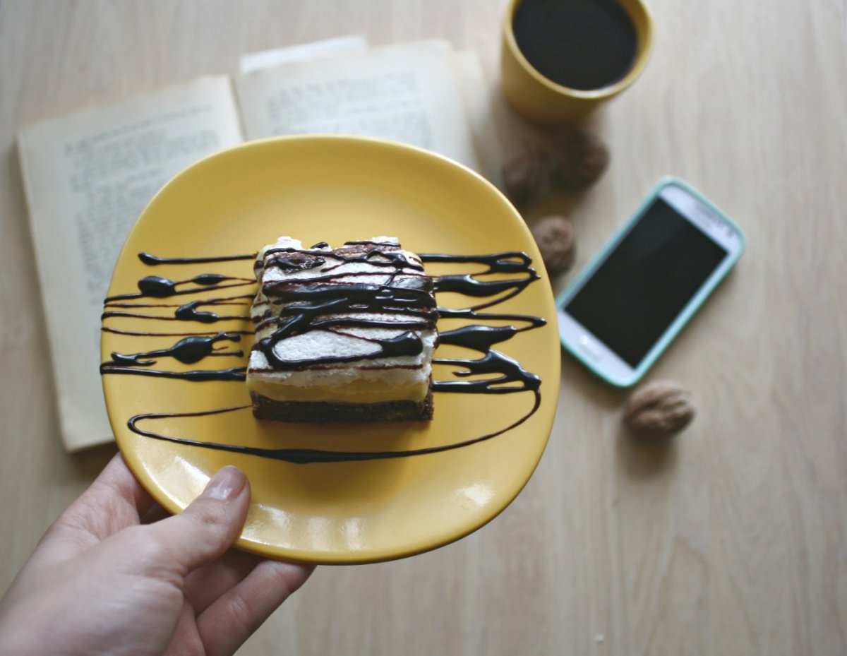 Blatul racit il acoperim cu crema de vanilie,apoi lasam la frigider sa se intareasca putin.Dupa ce s-a racit punem peste si bezeaua apoi decoram cu linii orizontale de ciocolata topita.Lasam la rece peste noapte sau daca chiar ispita este prea mare,treceti cu vederea si gustati dupa ce sta macar 2 ore la rece :D