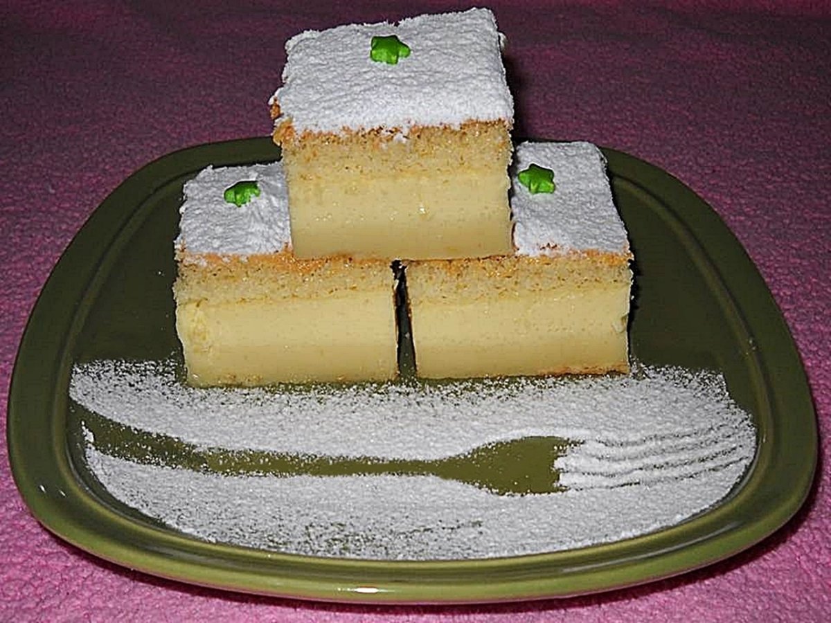 Dupa ce s-a copt, se lasa sa se raceasca in tava, se taie si se pudreaza cu zahar .