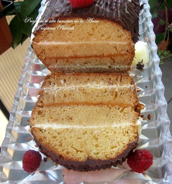 Facem glazura topind ciocolata cu laptele si turnam deasupra . Nivelam si dam la frigider pana a doua zi .