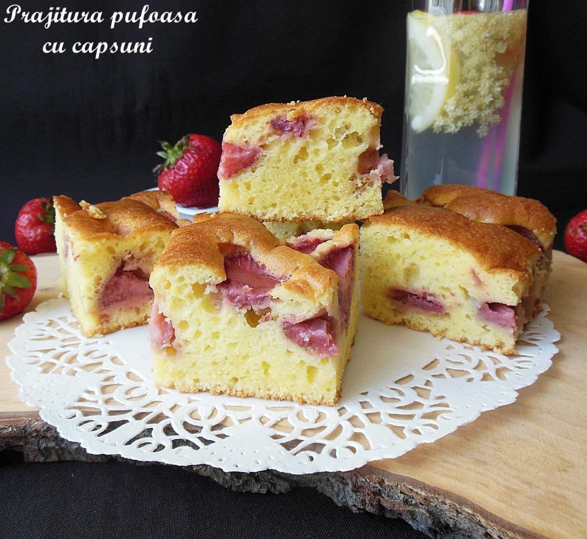 Bagam prajitura in cuptorul incins, la o temperatura potrivita, pentru 30-35 de minute, pana se rumeneste frumos deasupra, dar totodata sa fie coapta, facem testul cu scobitoare.