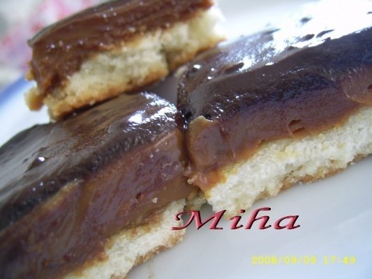 Pentru glazura, se topeste ciocolata si se intinde peste prajitura. Se da la rece pina se intareste glazura.