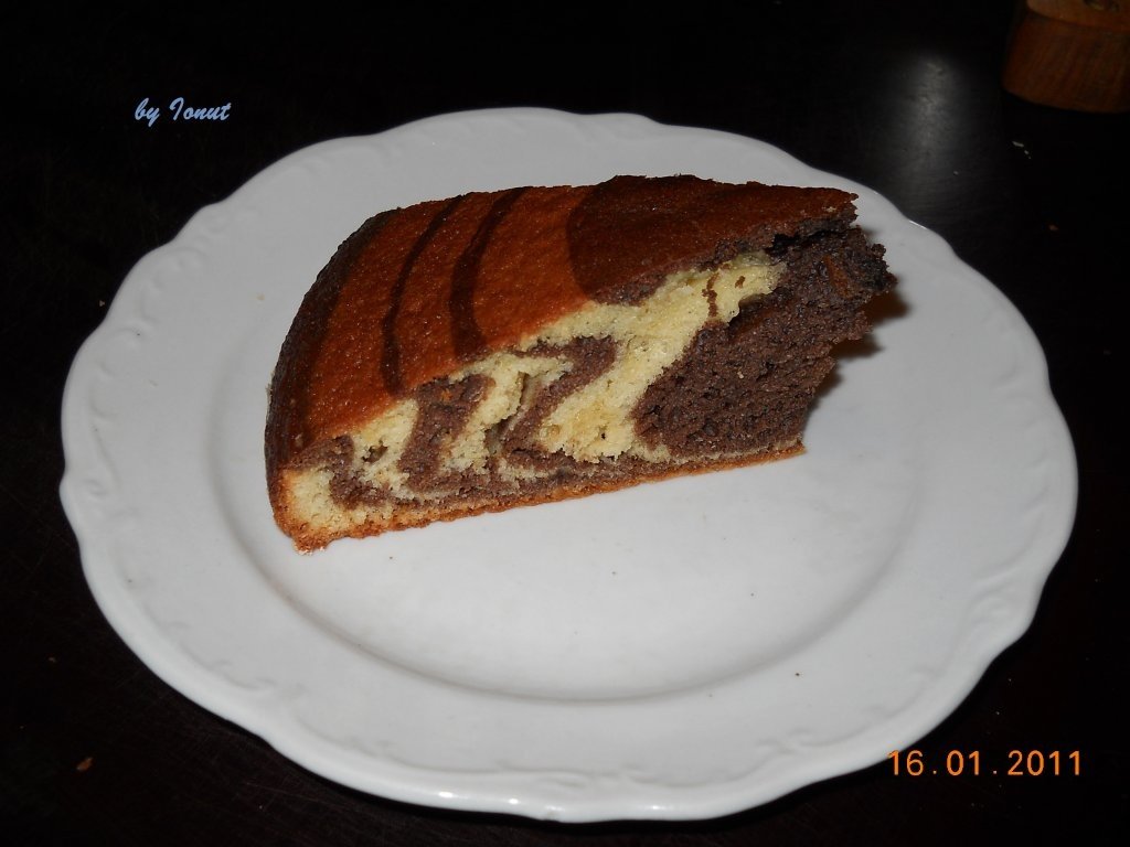 Intr-o tava rotunda se unsa cu margarina si tapetata cu faina se toarna in centru straturi succesive din fiecare compozitie .