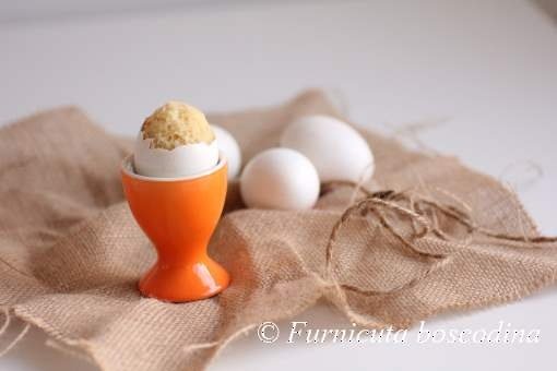 Cu ajutorul tirbusonului prin lovire faceti o mica gaura in partea de jos a oualor . O marim curatand usor coaja pana este destul spatiu incat sa poata iesi albusul si galbenusul (galbenusul poate fi spart , iese mai usor asa).si sa fie destul loc pe unde sa turnam aluatul in coaja apoi.