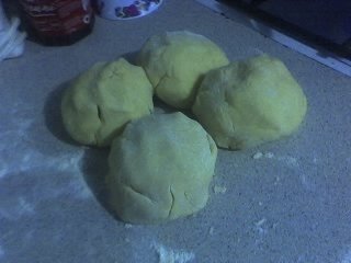 Intr-un castron se bate untul cu zaharul pina cind se obtine o crema usoara si spumoasa.Se adauga si se amesteca oul si vanilia.Se combina faina,praful de copt si sarea;se adauga treptat in mixtura cremoasa.