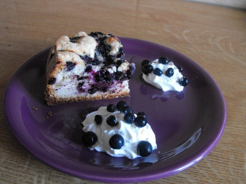 Am separat albusurile de galbenusuri si am batut bine albusurile spuma dupa care am adaugat zaharul si iar am batut pana ce compozitia nu cade din castron. Intr-o farfurie am amestecat galbenusurile cu un strop de sare, zaharul vanilat si cu cele 5 linguri de ulei iar dupa ce a fost gata le-am adaugat peste albusuri amestecand in continuare. Am adaugat si faina, am amestecat iar la final toata compozitia am turnat-o intr-o tava care a fost unsa cu ulei si tapetata cu faina, am pus afinele deasupra si am dat la cuptor la foc mic, cam 30 minute. O prajitura simpla si gustoasa pe care eu azi am preferat sa o pap cu frisca si a fost delicioasa.