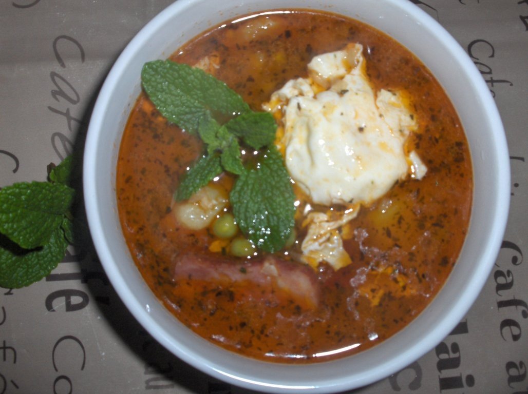 3)Se lasã sã fiarbã. Când este aproape gata se sparg ouãle, mai lasã putin si se ia de pe foc.