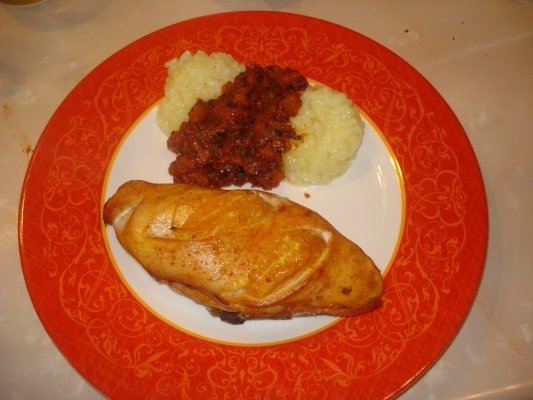 4.Se tine la cuptor timp de o ora, o ora si ceva.Dupa o ora scoateti tava si intoarceti puiul si pe cealalta parte.