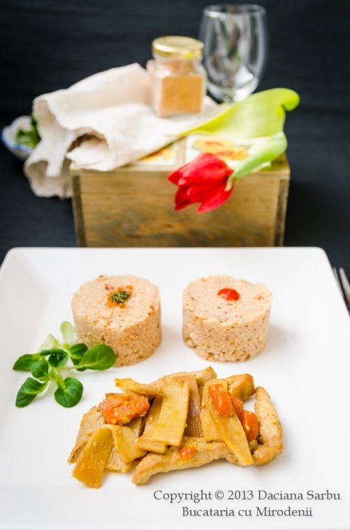 Couscous-ul se poate gati pe acelasi principiu ca si orezul sau pastele. Insa, atentie: nu am folosit acel couscous care de fapt este din paste fainoase marunte, ci couscous-ul din gris dur integral, un fel de gris sub forma de granule care cica ar fi varianta veritabila de fapt si are un proces de pregatire mult mai complex. Mai multe detalii am gasit aici.