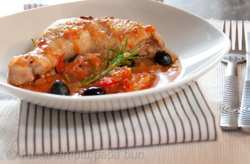 La final am adăugat măslinele și restul de rozmarin. Cred că nu mai este nevoie să vă descriu ce mâncare delicioasă a ieșit, numai bună pentru o cină alături de un pahar de vin.