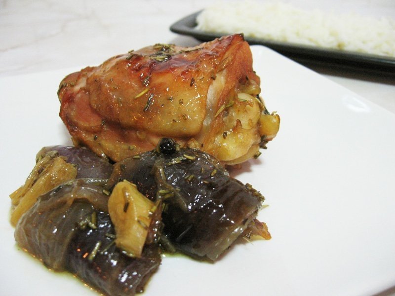 Combinaţi apoi 150 ml concentrat de pui cu mierea, oţelul balsamic, uleiul de măsline şi la sfârşit cele două linguri de rozmarin. Amestecaţi bine şi turnaţi totul în tavă.