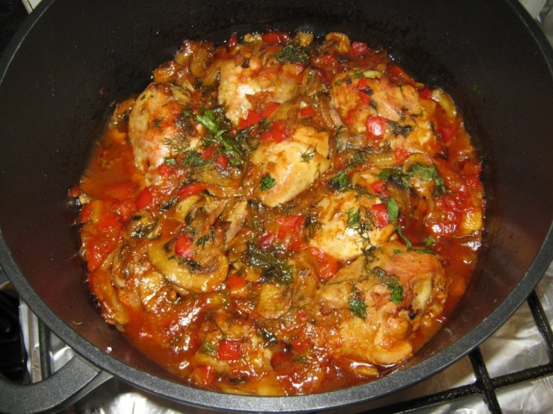 Se asaza in cratita ceapa si ardeiul taiate marunt, ciupercile feliate, si ciocanelele oparite in prealabil, peste care se toarna cam 2 linguri de ulei.