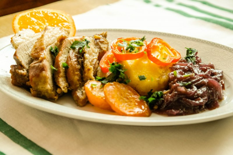 Pentru un plus de gust si savoare, se poate stropi carnea cu zeama unei portocale...